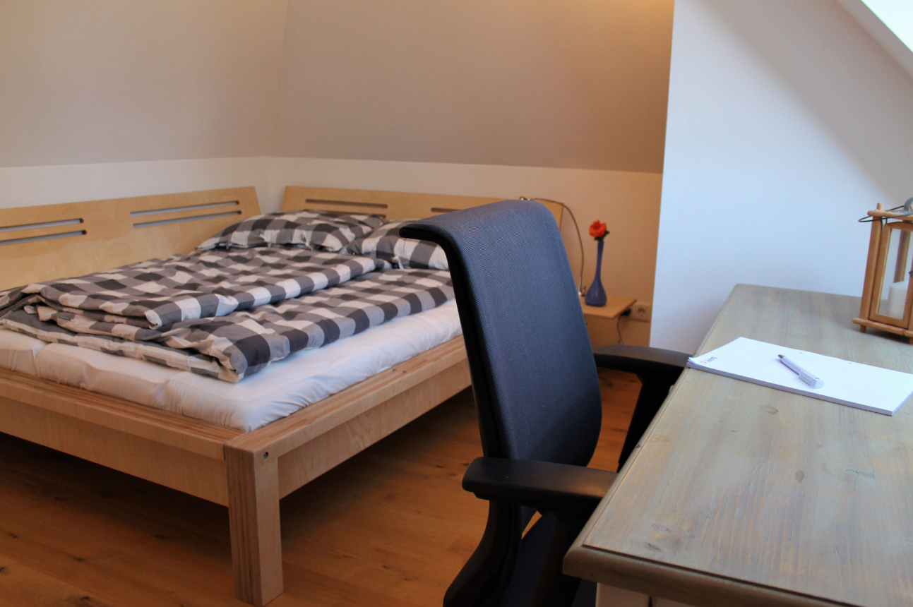 - Galerieschlafzimmer (Doppelbett, zum WZ offen) mit Schreibtisch